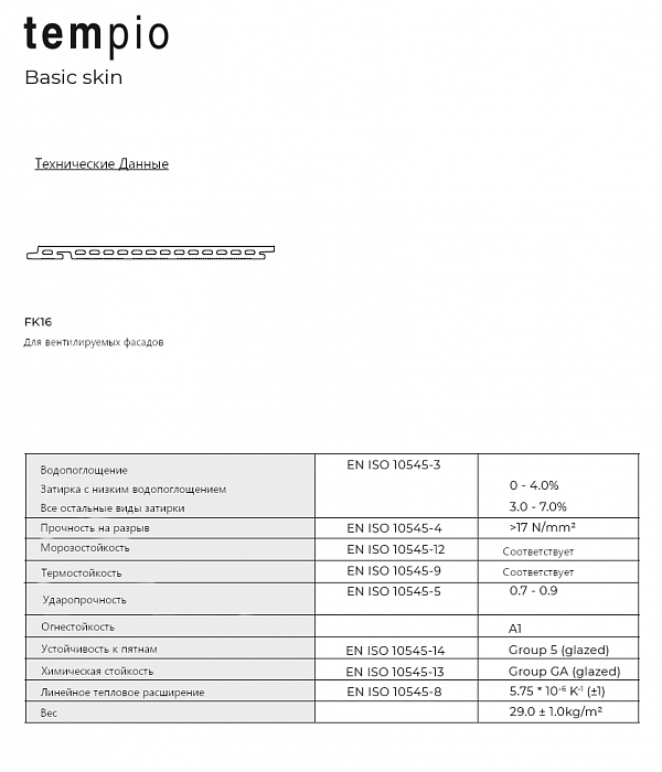 Керамическая плитка для вентилируемого фасада, система FKL-59/16, Tempio