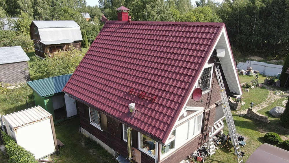 Сделали крышу на даче и довольны! Металлочерепица легкая, при этом прочная, монтировать было удобно. Цвет стойкий, без разводов, все пришло вовремя