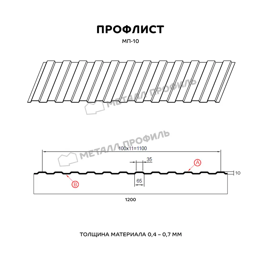 Профиль МП-10 имеет толщину 0,4 мм, что обеспечивает прочность и долговечность изделия.