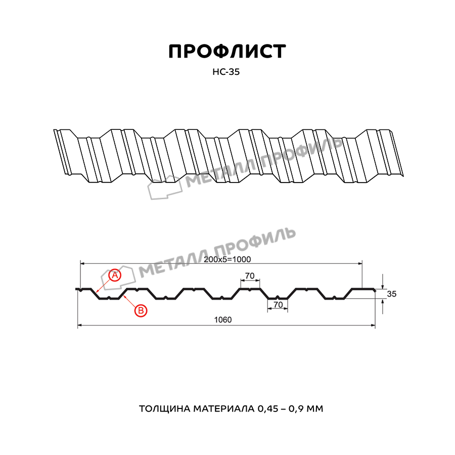Профиль НС-35 имеет толщину 0,5 мм, что обеспечивает прочность и долговечность материала. Он изготовлен из экологически чистой стали ECOSTEEL®, которая отличается высокой устойчивостью к коррозии и внешним воздействиям.