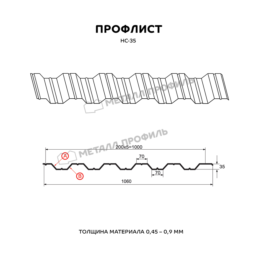 Профиль НС-35 имеет толщину 0,45 мм, что обеспечивает прочность и долговечность конструкции. Он изготовлен из металла, что делает его устойчивым к воздействию внешних факторов, таких как влага, коррозия и ультрафиолетовое излучение.