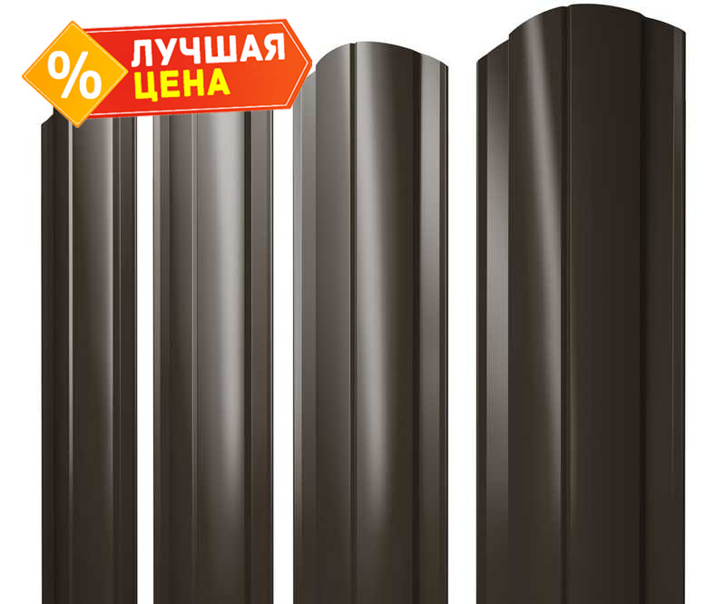 Штакетник Круглый фигурный Grand Line 0,5 Quarzit lite RR 32 Темно-Коричневый
